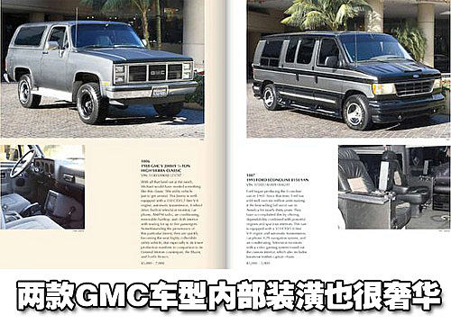 除了以上這款豪華車外,邁克爾杰克遜還擁有一臺(tái)1990勞斯萊斯銀刺二代,該車采用了白色真皮與黑色織物強(qiáng)烈對(duì)比的裝潢。黑色的車窗用白色的窗簾作為裝飾,此外還有一個(gè)功能齊全的酒吧間。另外兩款豪華車型分別為1988林肯Town Car以及1954凱迪拉克Fleetwood,這兩款車型均采用了極為精致的裝潢。